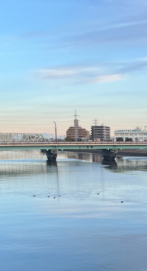 毛玉ちゃん以外の風景写真です。 頬が痛いほどの寒い朝。 先日は上空にVサインと投稿しましたが 川面にもVサインを見つけました。 わかりにくい···