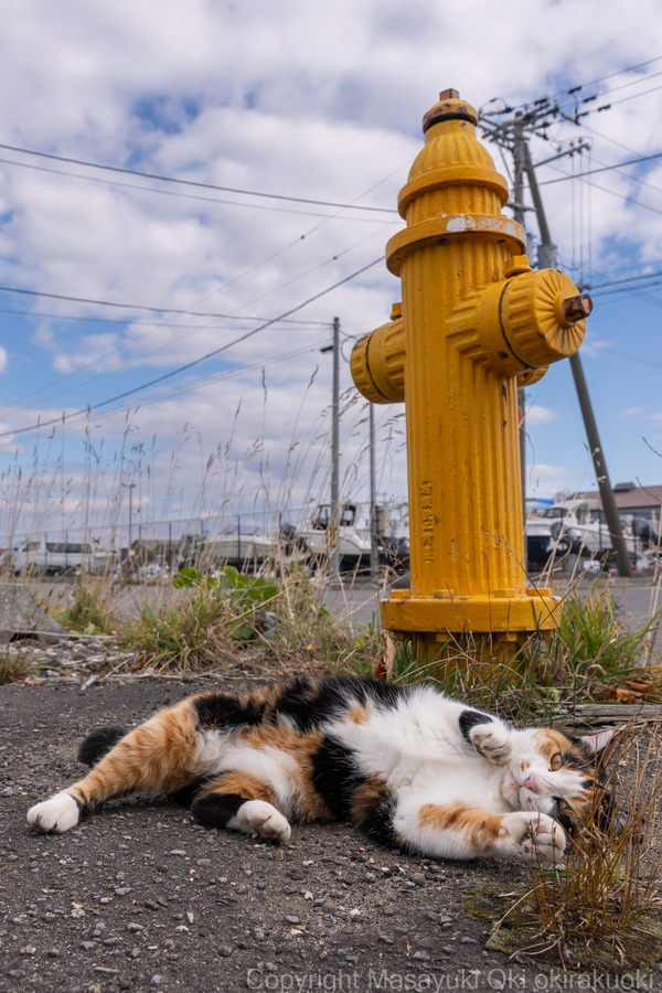 消火栓の前で。
